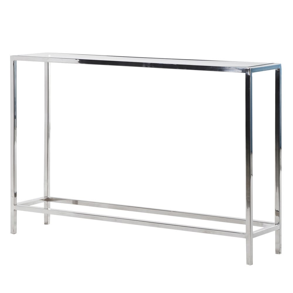 Round Gold and Glass side table perfect to dress with a table lamp or floral accessory.
